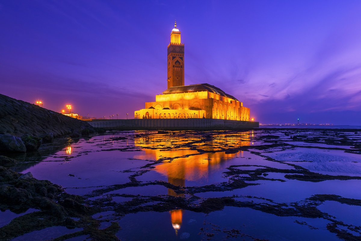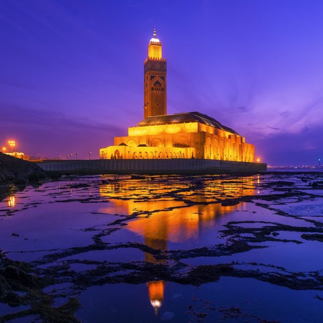 Today, you will return to the ocean city of Casablanca. If you are wondering what to do in Casablanca tonight, check out the Hassan II Mosque from outside. At night, the lighting makes it look stunning!